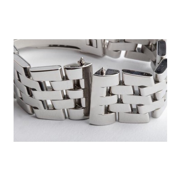 Zum Verkauf steht ein originales Breitling Pilotarmband mit den Referenznummern 300A und 14096, passend für den Breitling Chronomat und kompatibel mit ähnlichen Modellen. Das Armband befindet sich in sehr gutem Zustand und besitzt eine maximale Länge von 19,4 cm, die auch auf 18,5 cm per Einstellung zu reduzieren ist. Dieses klassische Edelstahlarmband verleiht Ihrer Breitling-Uhr einen zeitlosen Look und ist nicht mehr in dieser Form neu erhältlich. Es ist also eine tolle Gelegenheit, Ihrem Chronomat oder einem vergleichbaren Modell ein hochwertiges und seltenes Armband hinzuzufügen.