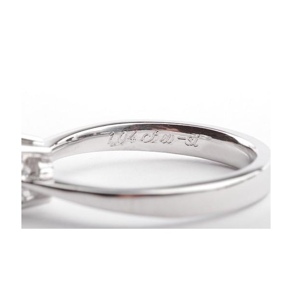 Der edle Brillant-Solitär wiegt 1,04ct (auch in die Ringschiene gepunzt) und besticht durch seine hervorragenden Qualitätseigenschaften (Weiß (H)/Si1, gut, gut, gut).