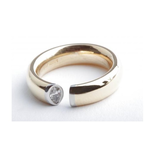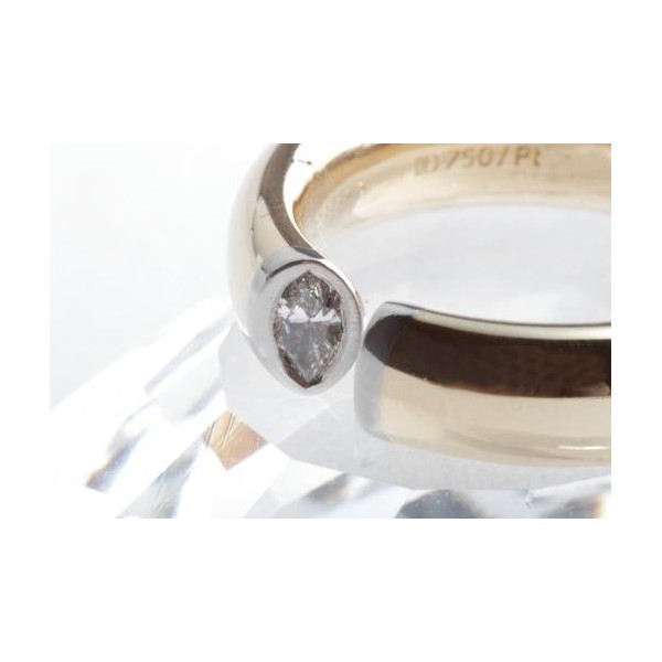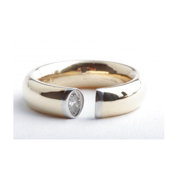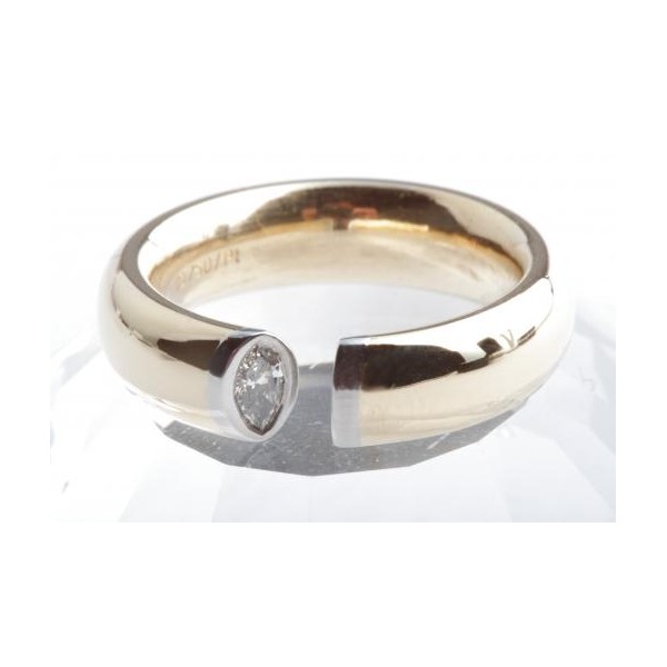 Designer Ring Diamant Navette Marquise Schliff 0,18ct 750 Gelbgold Platin 56