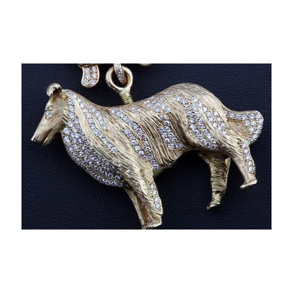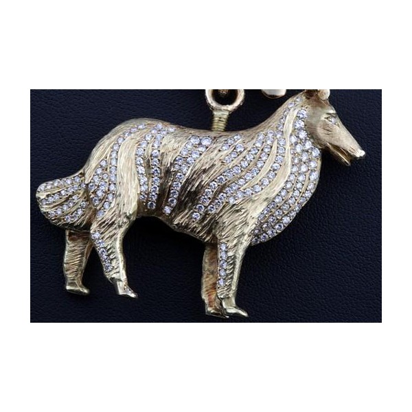 Der Collie-Anhänger wurde auf Kundenwunsch bei einer noblen Goldschmiede angefertigt und kostete einst 16500€. Er befindet sich, wie auf den Bildern gut zu erkennen, in hervorragendem Zustand (neuwertig) und kann hier weitaus günstiger erworben werden.