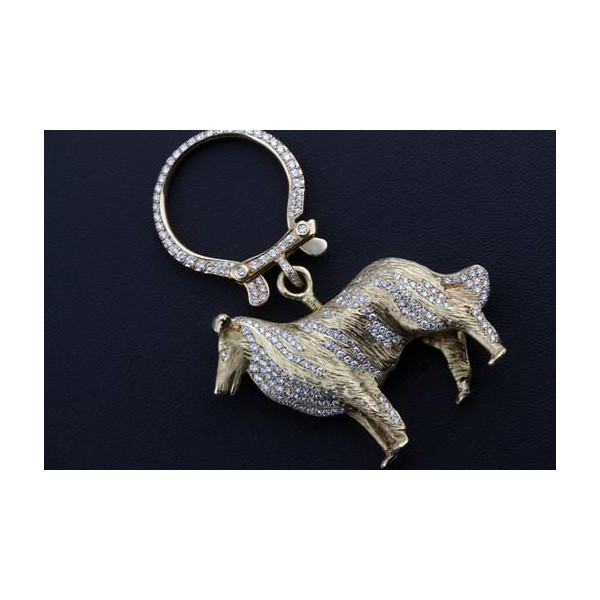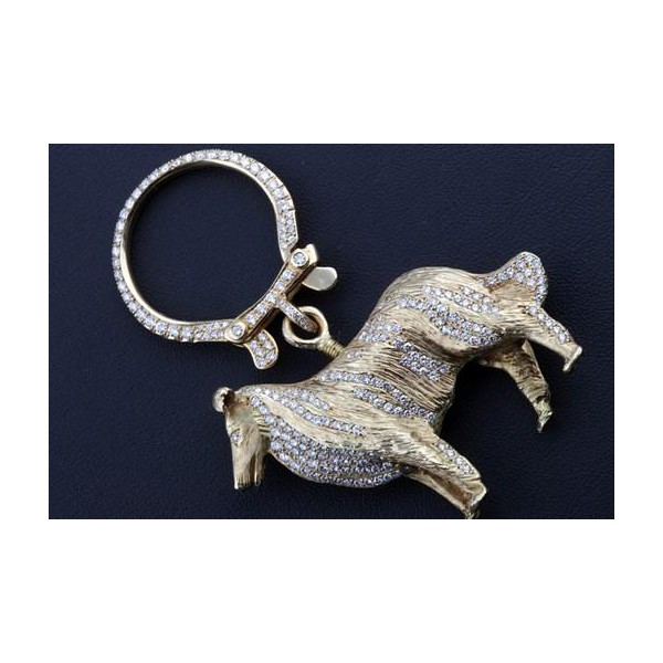 Schlüssel Anhänger Collie Hund 5ct Brillanten Diamanten 750 18K Gelbgold