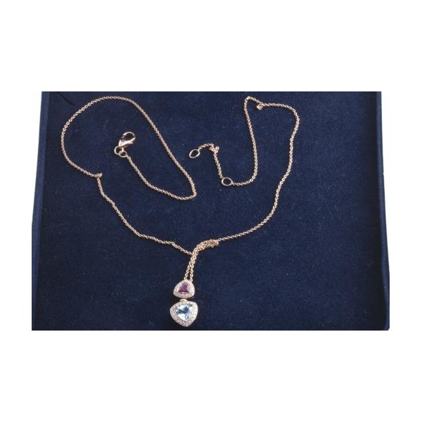 Kette mit Anhänger Bucherer 750 Rose Gold Aquamarin rosa Turmalin Brillanten