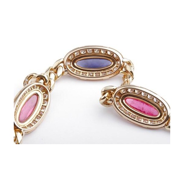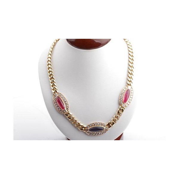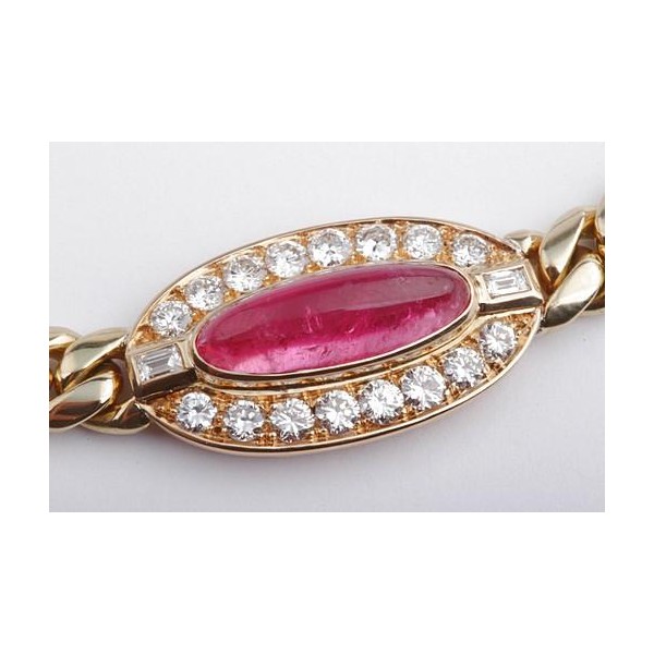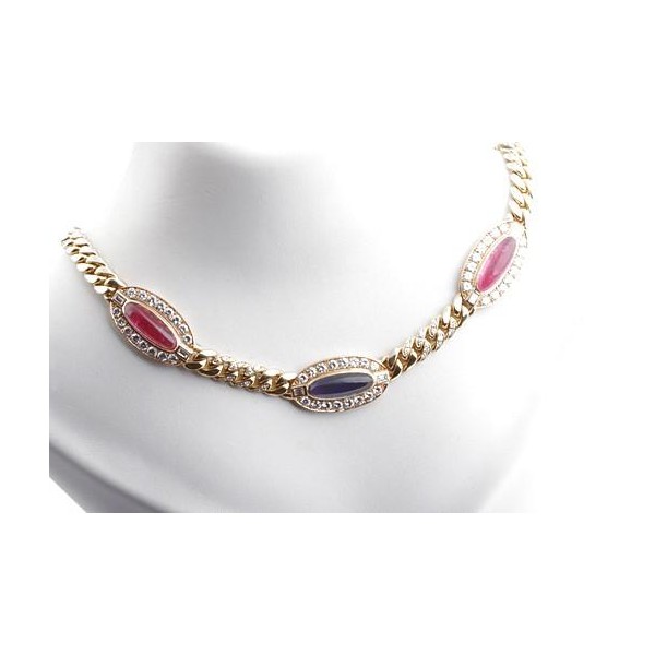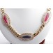 Panzer Collier Kette Iolith rosa Turmalin Brillanten 3,24ct 750 18K Gelbgold