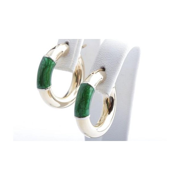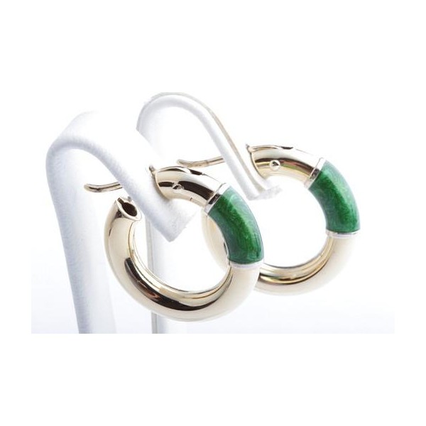 Ohrringe Creolen Kreolen mit Emaille 750 18K Gelb Gold