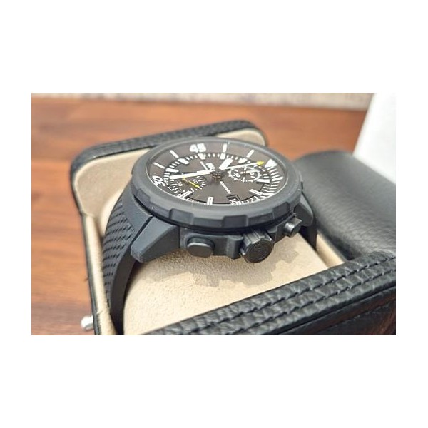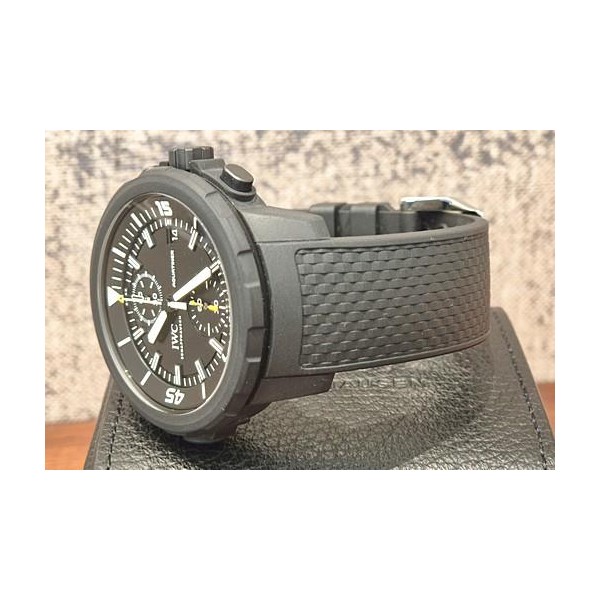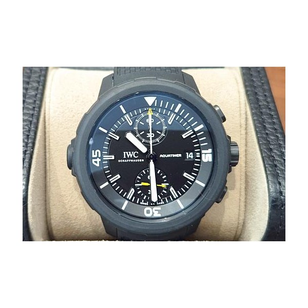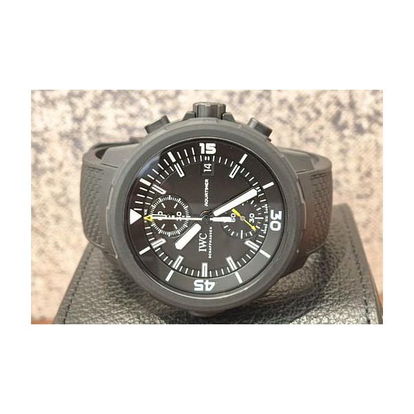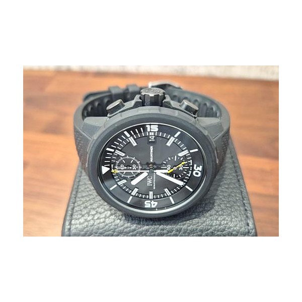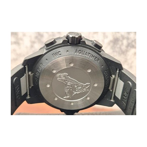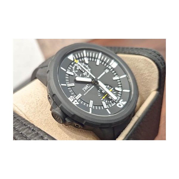 Ungetragener IWC Aquatimer Chronograph "Galapagos Island" Edition im Full-Set mit Garantie vom Hersteller bis 2028! Absoluter Topzustand. Die Kautschukbeschichtung wird in einem aufwendigen Vulkanisierungsprozess aufgebracht und macht die Uhren zu einem optischen und haptischen Erlebnis. Die Uhr ist mit dem zuverlässigen IWC-Manufakturwerk Kaliber 89365 ausgestattet und hat alles an Bord, was die Aquatimer-Chronographen so attraktiv für Über- und Unterwasserexpeditionen macht: Aussen-Innen-Drehring mit SafeDive-System, integrierte Flybackfunktion, Wasserdichtheit 30 bar und Super-LumiNova®*-Leuchtschicht.