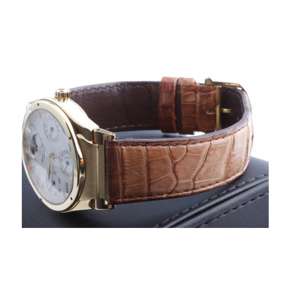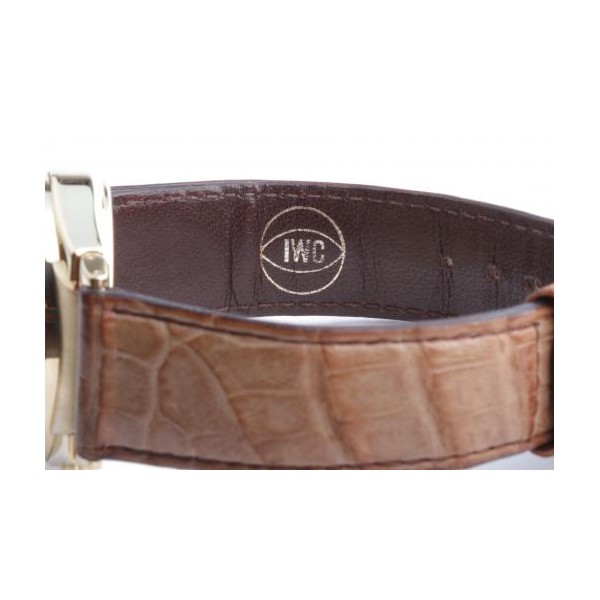 Das Lederarmband aus Alligator-Leder, sowie die IWC Dornschließe in 18k Gelbgold sind in einem sehr guten Zustand.