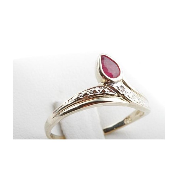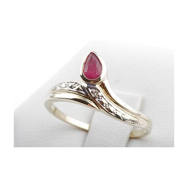 Dann werfen Sie doch einen näheren Blick auf diesen bezaubernden Solitär-Rubinring aus 14-karätigem Gelbgold, der in feinster Handarbeit hergestellt wurde.