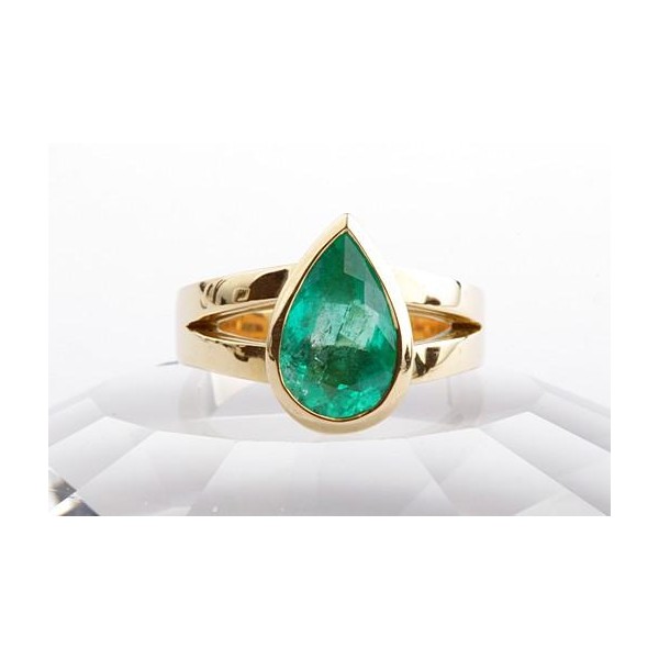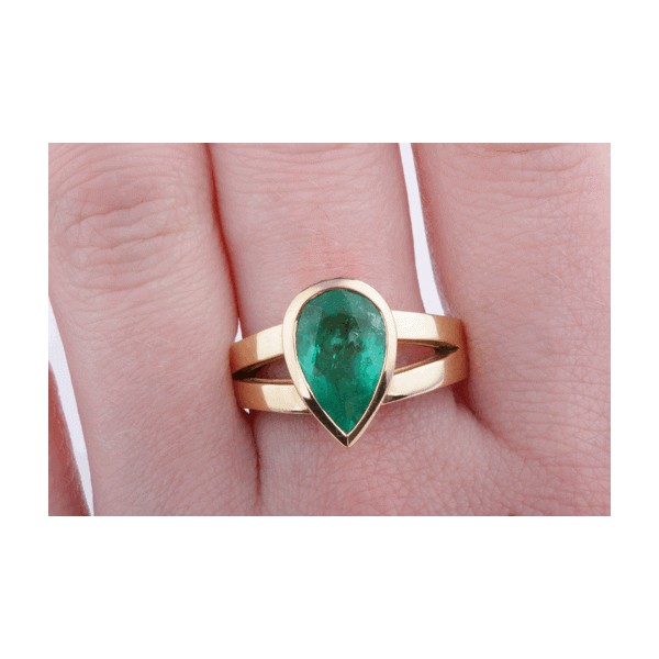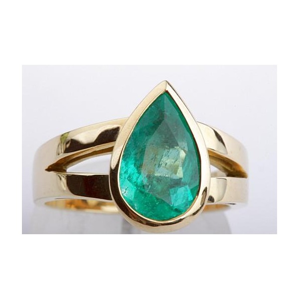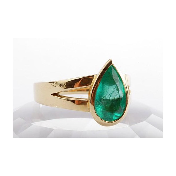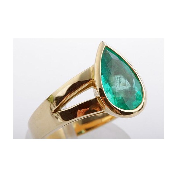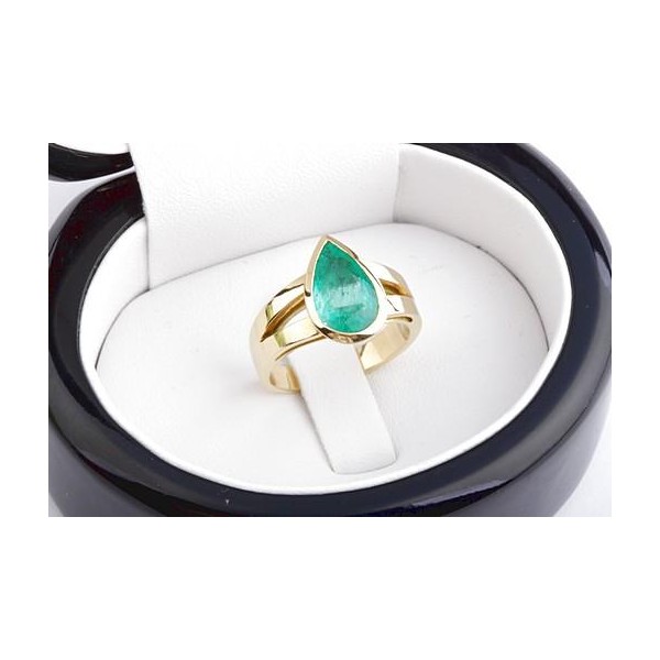 Smaragd Ring Solitär 2,38ct Kolumbien Tropfen Schliff 750 Gelbgold Edel