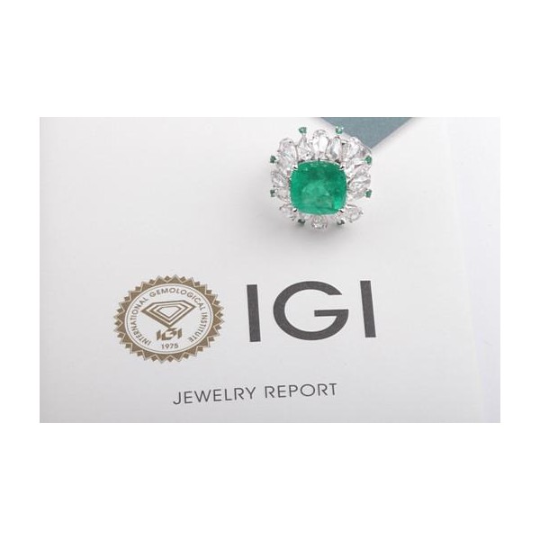 Laut IGI Expertise hat der feine Smaragd die sehr seltene Qualität "Minor oiled", dies bedeutet, dass er nur geringfügig geölt wurde (Smaragde werden grundsätzlich geölt).