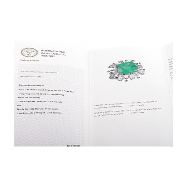 Designer Smaragd Ring 7,38ct Kolumbien Diamanten 3,58ct 750 Weißgold IGI Exp.